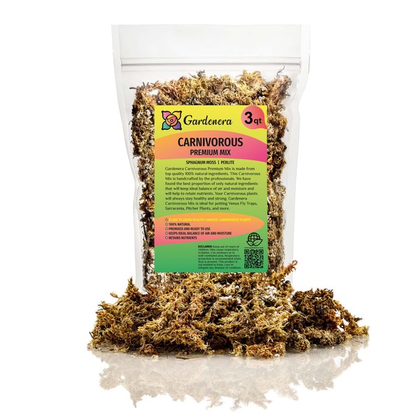 Gardenera Premium Carnivorous Plant Potting Mix - 3 Quart Sphagnum Moss and Perlite Blend for Potting Venus Fly Traps, Sarracenia, Pitcher Plants