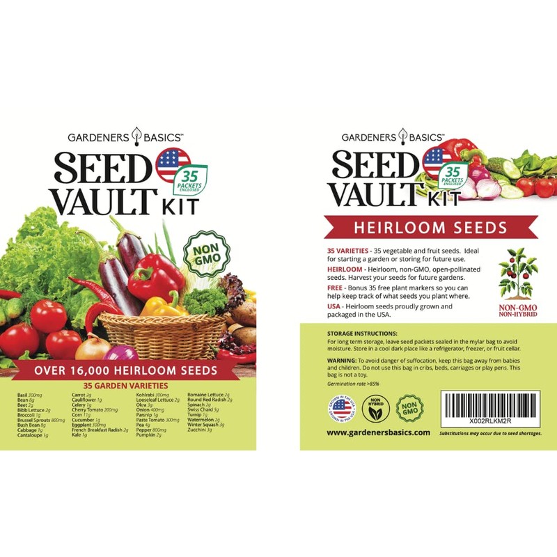 Gardeners Basics Survival Vegetable Seeds Garden Kit Over 16,000 Seeds Non-GMO and Heirloom, Great for Emergency Bugout Survival Gear 35 Varieties Seeds for Planting Vegetables 35 Free Plant Markers Gardeners Basics