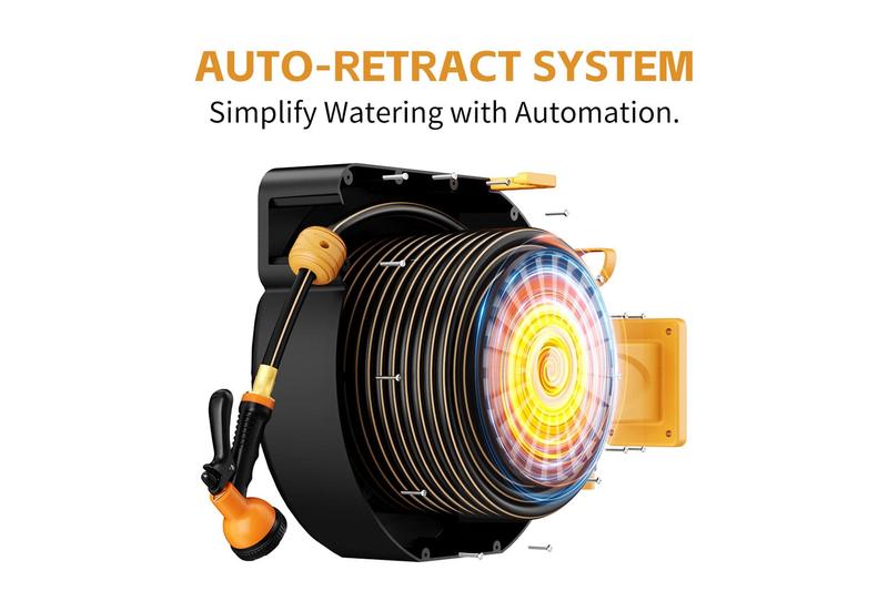 - Convenient Storage Design: The retractable hose reel comes with a wall-mounted design that makes it easy to store your garden hose.