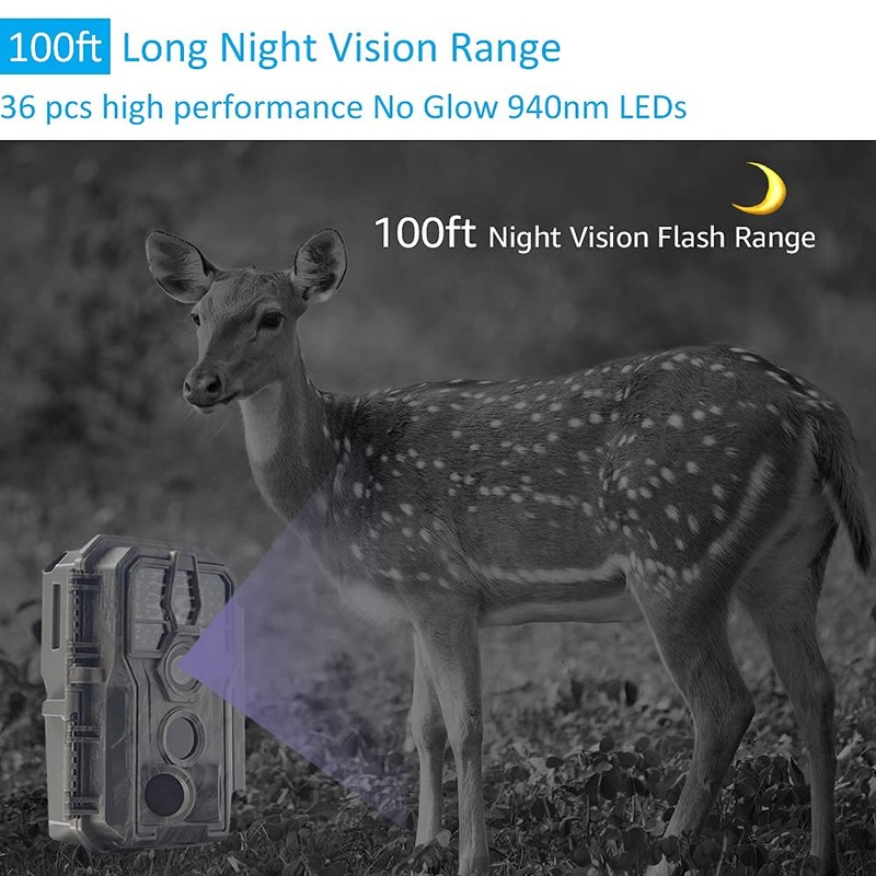 - Powerful Video Performance: This trail cam features exclusive video technology to produce 1296P or 1080P videos with an aspect ratio of 16:9, the video format is in MP4 or MOV, you can program it as you prefer.