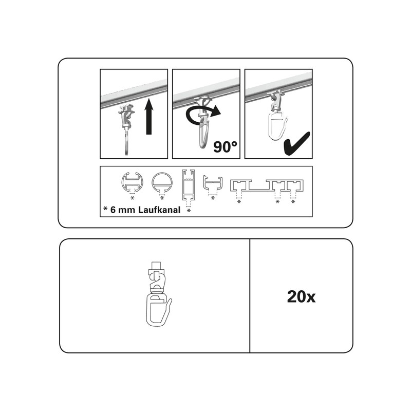 Gardinia 31552 Drehgleiter for Curtain Rods with Inner Chicago Series Diameter 20 MM White