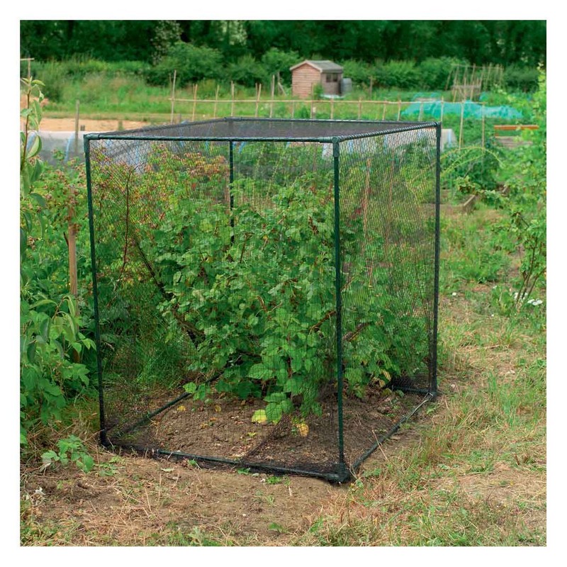 Gardman 7660 Fruit Cage Small. Ideal way to protect fruit bushes (blueberries etc.) and vegetables from hungry birds, deer, rabbits and other critters. Constructed of sturdy 0.6" powder coated tubular steel with simple push-fit assembly that requires no tools. Tough, woven mesh UV-stabilized black polyethylene netting; will last through many growing seasons. Important installation tip: Netting may appear too short initially, however once the flexible diamond shaped mesh is stretched will quickly transform to fit your fruit cage. Small fruit cage is just one of three models/sizes available from Gardman. Also available are: 7661 Medium and 7662 Large. Dimensions: 39" Long x 48" Wide x 48" High. Gardman "Bring your garden to life"