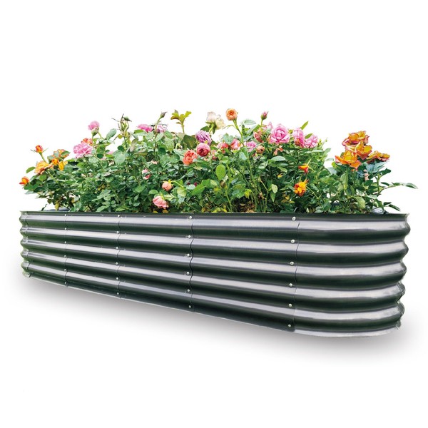 - PROPERLY SIZE FOR YOUR GARDEN: The size of GARDMAX raised bed is 8x2x1.4(ft)=94.5x23.6x16.5(inch). The GARDMAX galvanized raised garden bed planter can meet your outdoor planting needs, provide ample growing space to raise vegetables, herbs, fruits, flowers and small trees anywhere in your garden