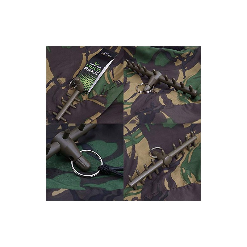 - Its design allows the rake to be attached to a rope and thrown by hand, or attached to a landing net handle or pole with the integral 3/8 BSF thread