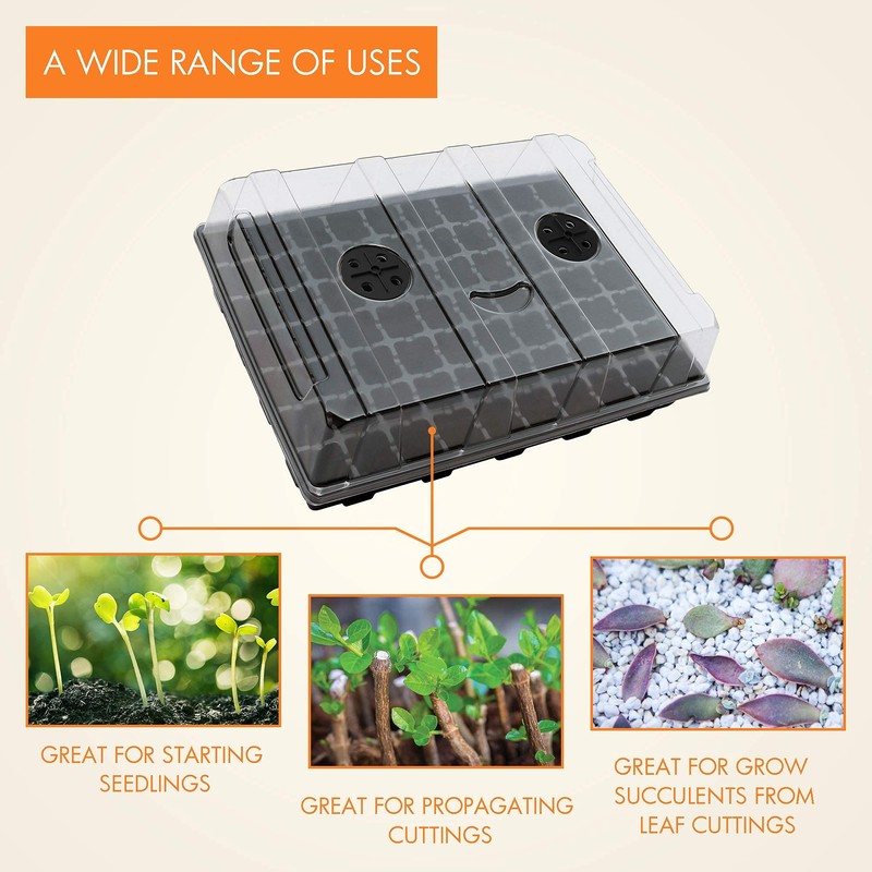 - High Quality and Durable - These seedling starter trays are made from premium plastic material, ensuring long-lasting use for all your seed starting needs. Comes with thoughtfully attached stickers, you can achieve a tighter fit of dome and base for maximum efficiency.