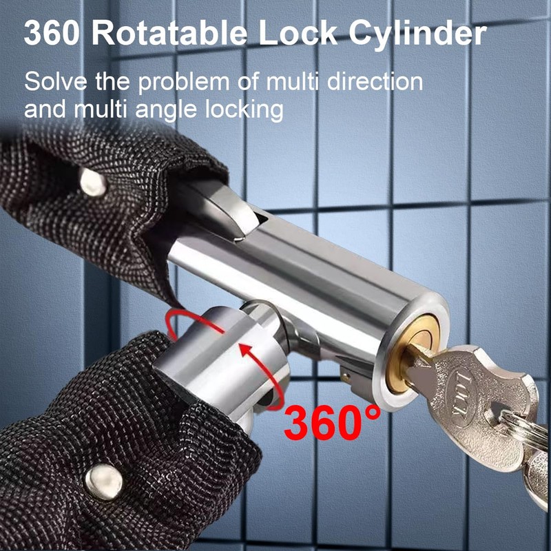 - Quality material: The bike lock is coated with a chrome-plated rust protection layer, and the lock and chain are made of specially hardened steel, which is not only strong, but also corrosion-resistant.
