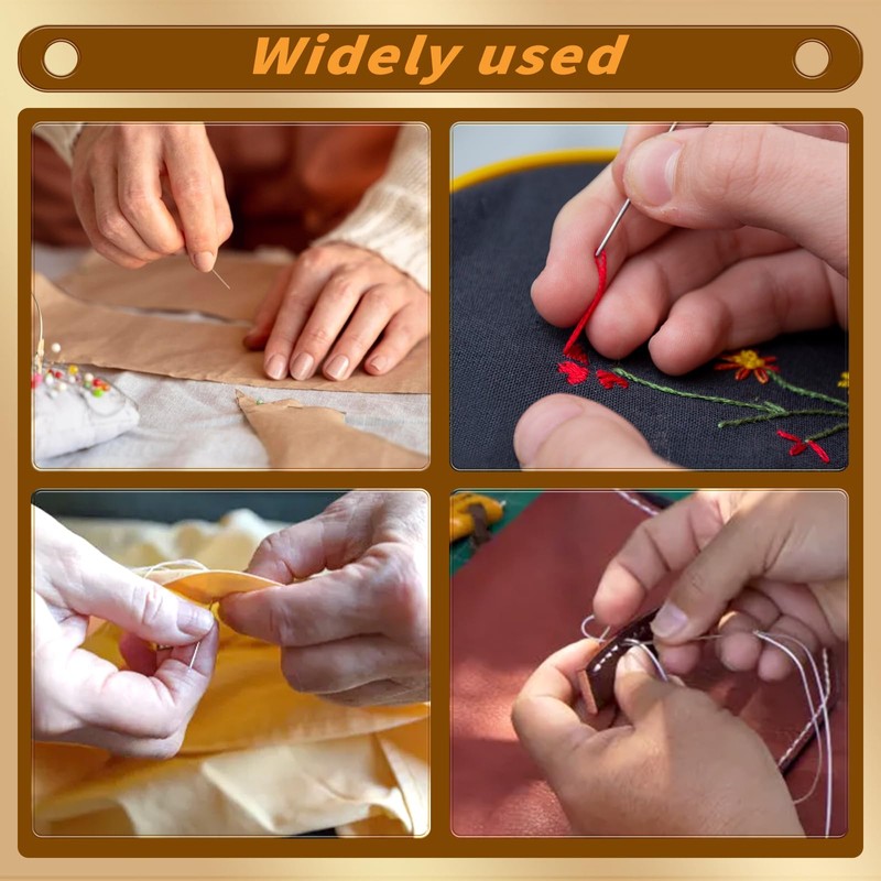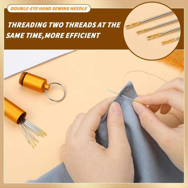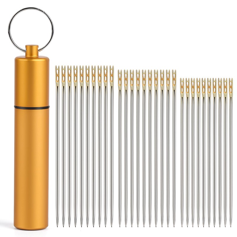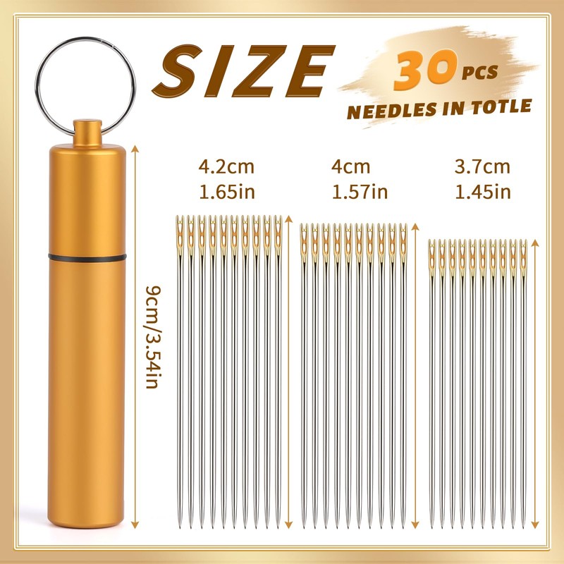 - THE PRODUCTS INCLUDE: This 30pcs self threading needles set is designed with double hole in 3 sizes(1.45"/ 1.57"/ 1.65"),10pcs per size with a needle case for storing handmade sewing needles.