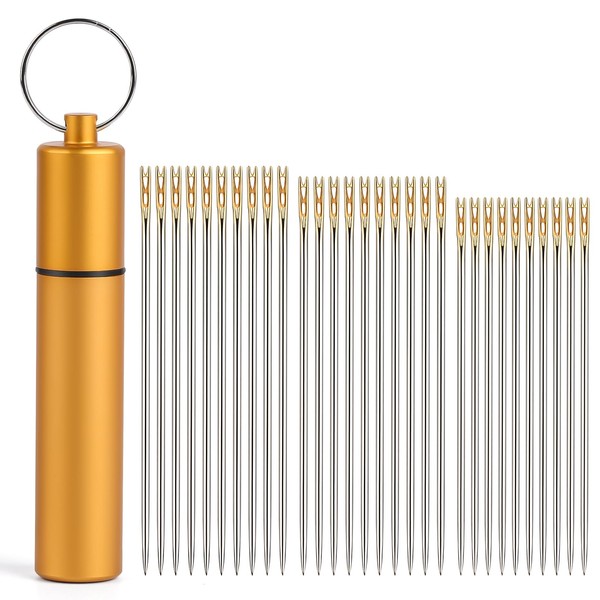 GarfxG 30pcs Self Threading Needles Easy Threading Hand Sewing Needles Large Eye Sharp with A Metal Tube for Storing, Blind Handmade Sewing Embroidery Accessories