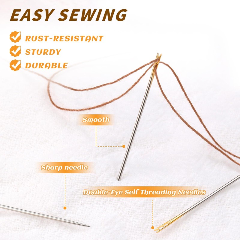 - PERFECT FOR EVERYONE: Our self-threading needles are perfect for all kinds of hand sewing projects and daily mending. The smart design saves you time and effort putting thread through needle eyes, which is especially great for elderly people.