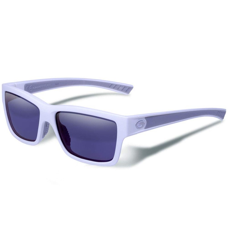 Gargoyles Performance Eyewear Homeland Polarized Glasses, Matte White Frame/Smoke with Blue Mirror Lenses
