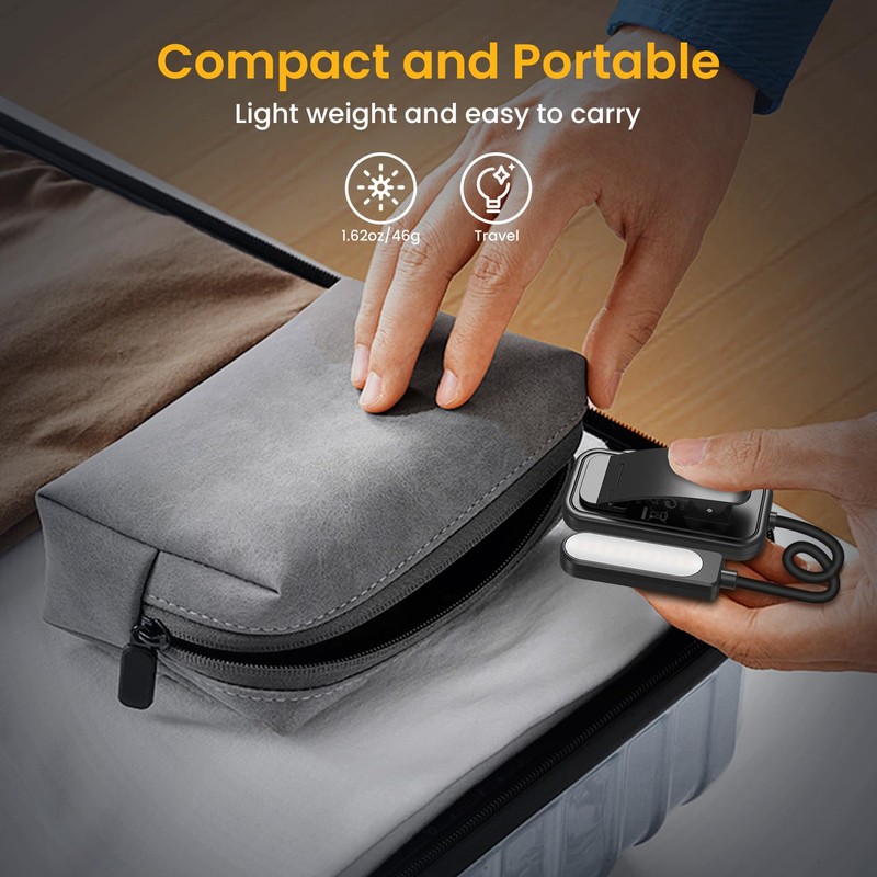 - ??Leicht und TragbarDie Leselampe l?sst sich flexibel biegen und falten und wiegt nur 45 g, was sie relativ leicht macht. Dank ihrer Mini-Gr??e und Kompaktheit passt sie problemlos in Ihre Hosentasche oder Ihre Handtasche. Sie ist daher auch ideal fr Camping und Reisen und ein perfekter Begleiter fr Ihre n?chtliche Lektre. Mit dem Clip l?sst sie sich an Bcher, Laptops, Kindle, Betten, Regale, Bett usw. befestigen.