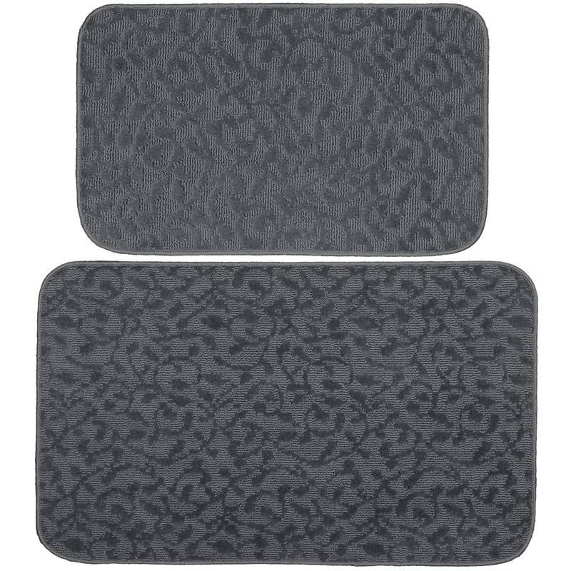 Garland Rug Ivy Vine Rug Mat Set, (2 Piece 18 in x 30 in & 24 in x 40 in, Cinder Gray