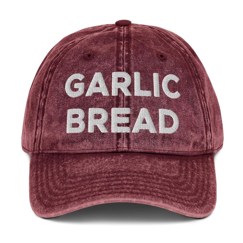 Garlic Bread Hat (Embroidered Vintage Cotton Twill Cap) Maroon