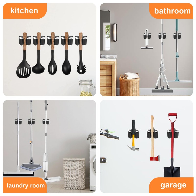 – Mount brooms, mops, shovels and rake easily, instead of leaning the brooms to the wall and in the corners.