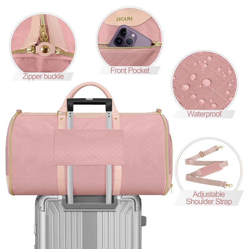 Ultimate 3-in-1 Garment Duffel Bag – Wrinkle-Free, Spacious 50L Capacity, Waterproof, Ideal for Business Trips & Weekend Getaways (QPink)