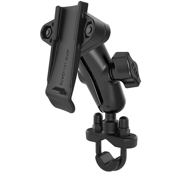 The RAM-B-149Z-GA76U consists of a zinc coated u-bolt base, double socket arm and the Garmin Spine Clip holder. Included in this package is hardware that will accommodate rails from 0.50" to 1.25" in diameter. The base includes black cover caps to be placed over the exposed ends of the u-bolt. The mount is designed with a RAM 1" diameter patented rubber ball and socket system that has adjustment points at both ends of the double socket arm; this allowing for almost infinite adjustment and perfect viewing angles. The included composite rail adapter can narrow the rail to a minimum width of 0.5". With the included RAM-HOL-GA76U Garmin spine mount from RAM Mounts you can make any Garmin handheld device featuring an integrated spine connection RAM Compatible - it’s as easy as slide, snap, and secure. This mount easily clips into the integrated spine connection on a wide range of Garmin GPS and satellite communication handheld devices. Easily pair your Garmin handheld with any RAM B size mounting base with the included B size diamond base adapter and hardware. This allows you to take advantage of popular solutions like the RAM Twist-Lock suction cup, RAM Tough-Claw, RAM Tough-Track, and much more. To see if your Garmin handheld device is compatible with this spine mount, check the list below: