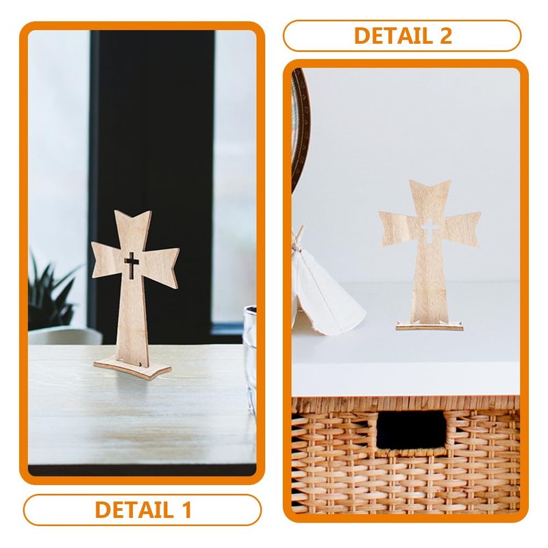 - Decorative wood crafts: ♰wood crosses for crafts and table displays, wooden cross easter wooden cross catholic standing table decorations cross statue rustic wood christian cross wood cross ornament can be put on the table firmly and stably because of its sturdy base stand.