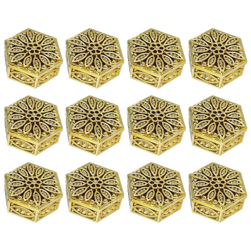 Garneck 12X CANDY BOX- Classic Royal Style Hexagonal Openwork Box, Plastic Trinket Box Wedding Favor Table Decorations-Gold (2.3)