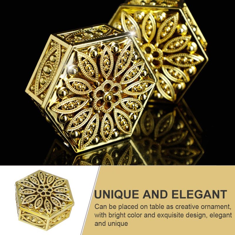 This candy box has a unique and elegant appearance, the golden hexagonal skeleton design is the classic European royal style, with the development of the world, this shape fused with modern style is loved by everyone, used in daily life.