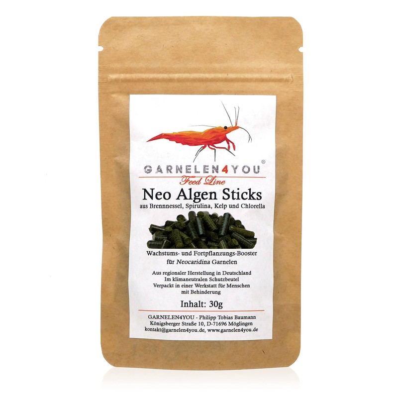 GARNELEN4YOU® Neo Algae Sticks | Growth & Reproduction Booster | Regional Production in Germany | for Neocaridina Shrimp | Premium Shrimp Food (30 g)