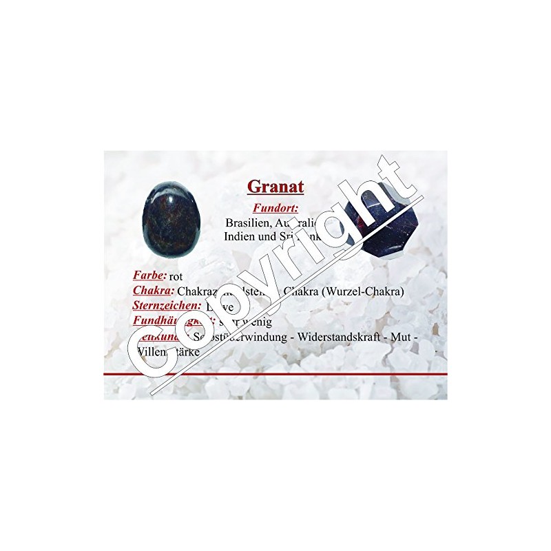 The garnet is assigned to the first chakra (Muladhara), this is the sexual or root chakra located in the pelvic area.