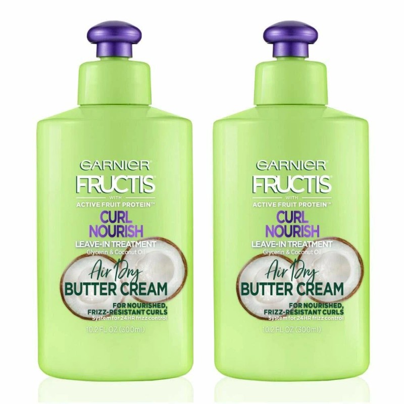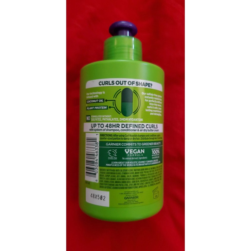 Give your curls 24 hour frizz control!* Paraben-free and Sulfate-free Curl Nourish Shampoo, Paraben-Free Curl Nourish Conditioner, and Curl Nourish Butter Cream Leave-In Treatment provides intense nourishment for strong hair with smooth, frizz-resistant curls. Curl Nourish has a new look, same amazing formula! Garnier Fructis Curl Nourish Air Dry Butter Cream Leave-In Treatment replenishes for long lasting moisture Give your curls 24 Hour Frizz Control with the Garnier Fructis Curl Nourish System of products Infused with with Glyercin and Coconut Oil Packaging may vary - new look, same amazing formula