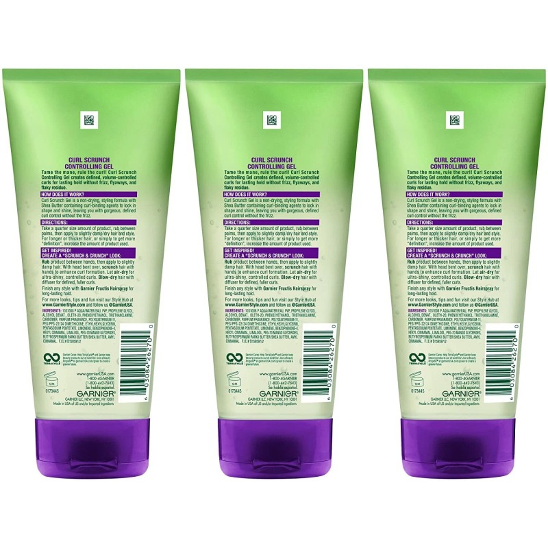 Tame the mane, rule the curl! Garnier Fructis Style Curl Scrunch Controlling Gel is a styling gel for curly hair that creates defined, volume-controlled curls and offers lasting hold without frizz, flyaways, and flaky residue.