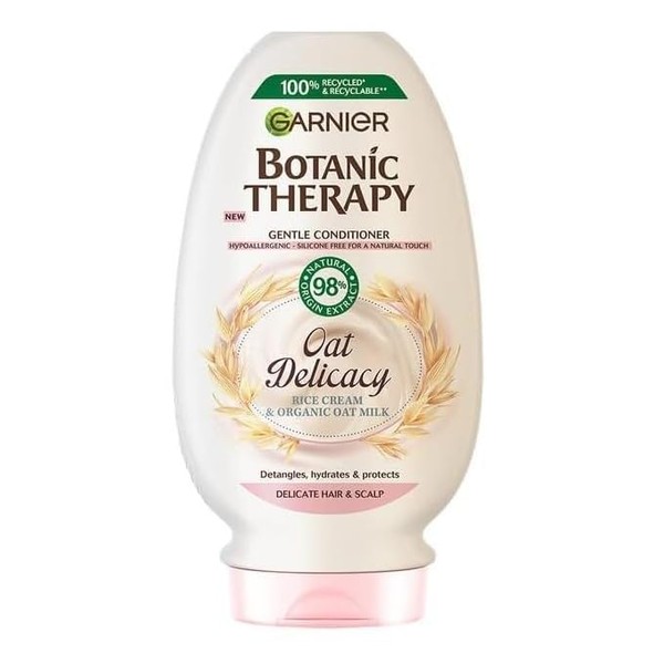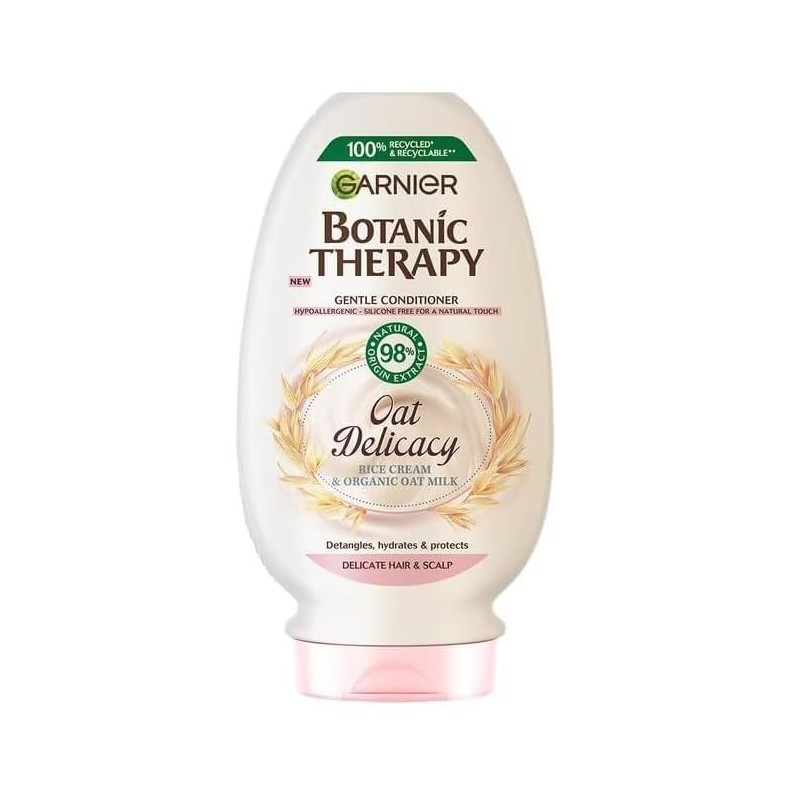 Caring for a sensitive scalp and delicate hair can be a real challenge. The hypoallergenic formula of Garnier Botanic Therapy Oat Delicacy has a gentle and yet effective effect - the oat milk in the composition soothes even the most irritated skin, and the rice cream intensively nourishes and hydrates the hair. After using the product, you enjoy a light and natural feeling, and your hair is soft and easy to comb. Product without silicones.