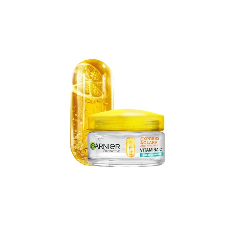 Garnier Express Aclara Gel crema hidratante con Vitamina C anti-brillo, 50ml. Hidrata, ilumina y unifica el tono de la piel