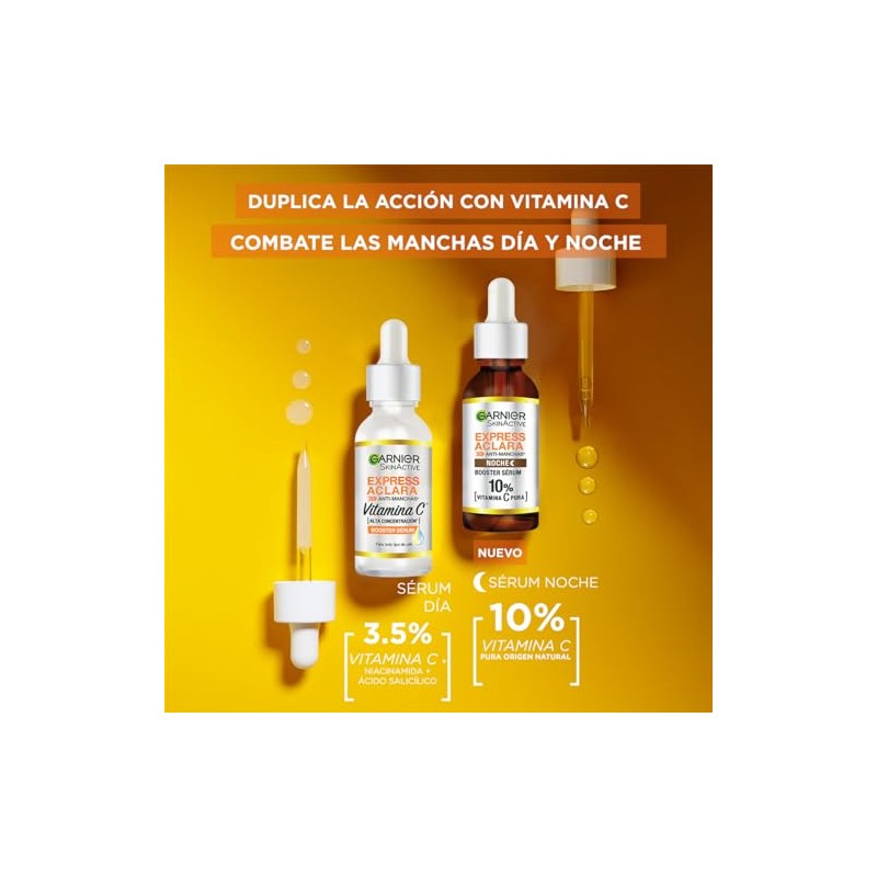 Garnier Express Aclara Serum Noche Antimanchas con 10 Vitamina C Pura para una Piel Radiante, reduce las Manchas durante la Noche, 30ml