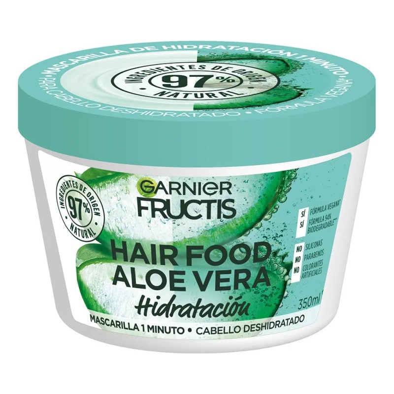Mascarilla fructis hair food Aloe Vera 350 ml para hidratar tu cabello en solo 1 minuto. Con fórmula vegana, biodegradable y hecha con ingredientes 98% de origen natural. Todos nuestros productos son cruelty free.
