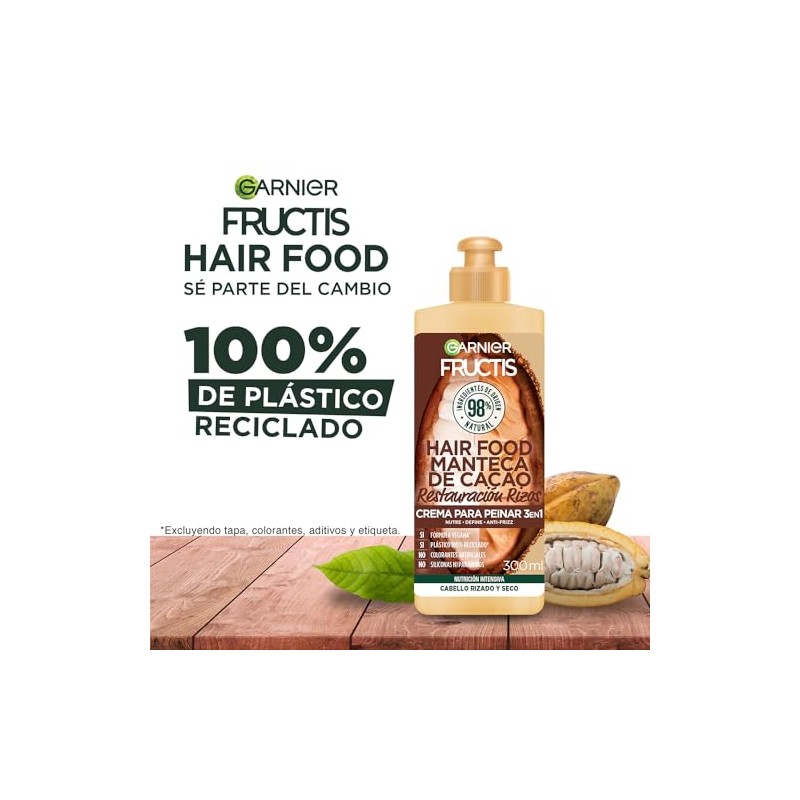 Garnier Fructis Hair Food Manteca de Cacao Crema para Peinar Cabello Rizado Rico en Antioxidantes, 300 ml