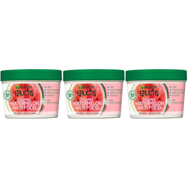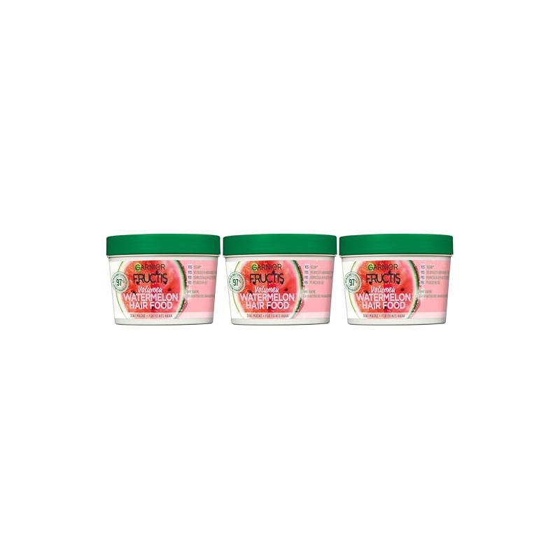 Garnier Fructis Hairfood Watermelon Moisturising 3-in-1 Hair Mask, Gently Detangles Fine Hair and Gives Shine, (3 x 390 ml)