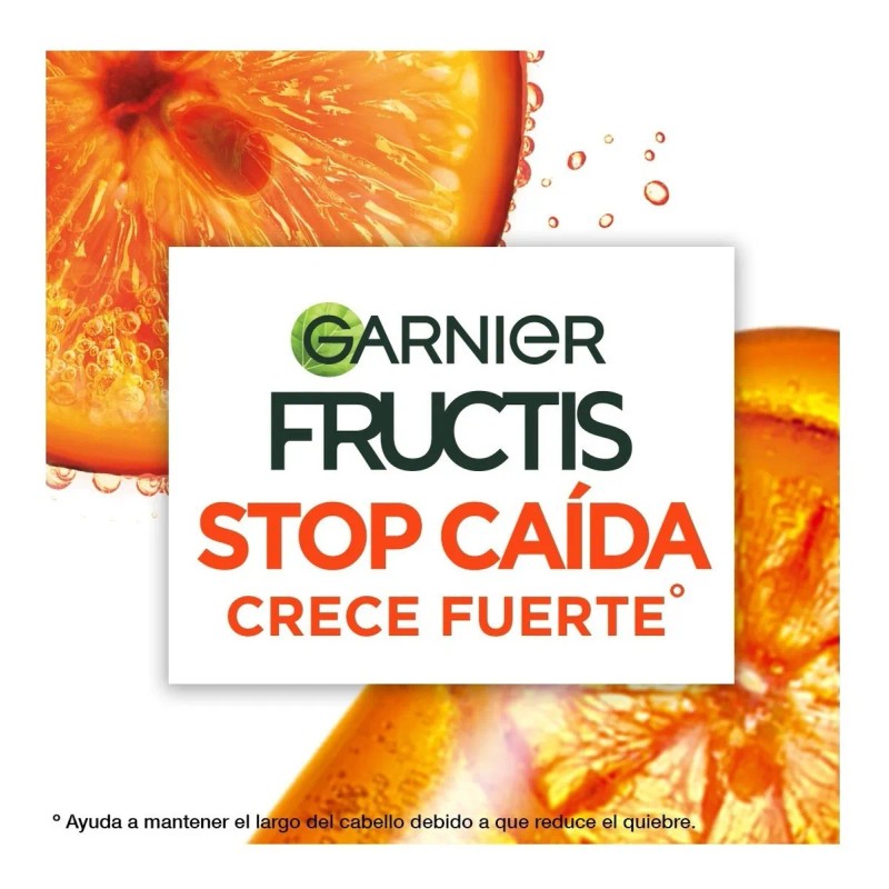 Descripción Limpia: Garnier Fructis Shampoo 2en1 Stop Caída Crece Fuerte 650 Ml es un producto formulado con naranja sanguína, vitamina C y taurina que reducen significativamente la caída desde el primer uso. Es ideal para el cabello débil que se cae.