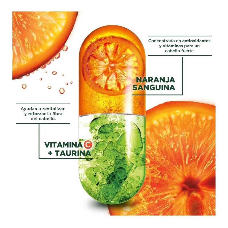- Con Vitamina C + Taurina para revitalizar y reforzar la fibra del cabello.
