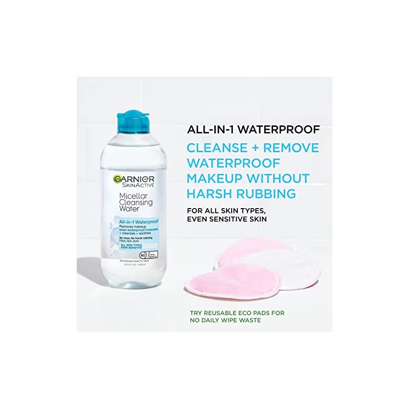 - Garnier Waterproof Micellar Cleansing Water is a facial cleanser that soothes and refreshes skin while removing even stubborn waterproof makeup in just one step