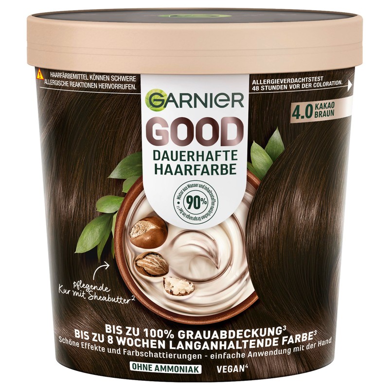 Garnier Good Permanent Hair Colour 4.0 Cocoa Brown - Colouration without Ammonia, Up to 100% Grey Coverage, Pack of 1