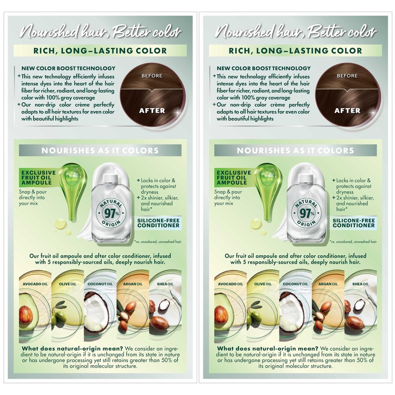 - Nourishing Hair Color: Discover the number 1 Nourishing Color Creme; Nutrisse Color is formulated with color boost technology and a blend of triple fruit oils: avocado, olive, and shea, to deliver permanent hair color, even to dark hair