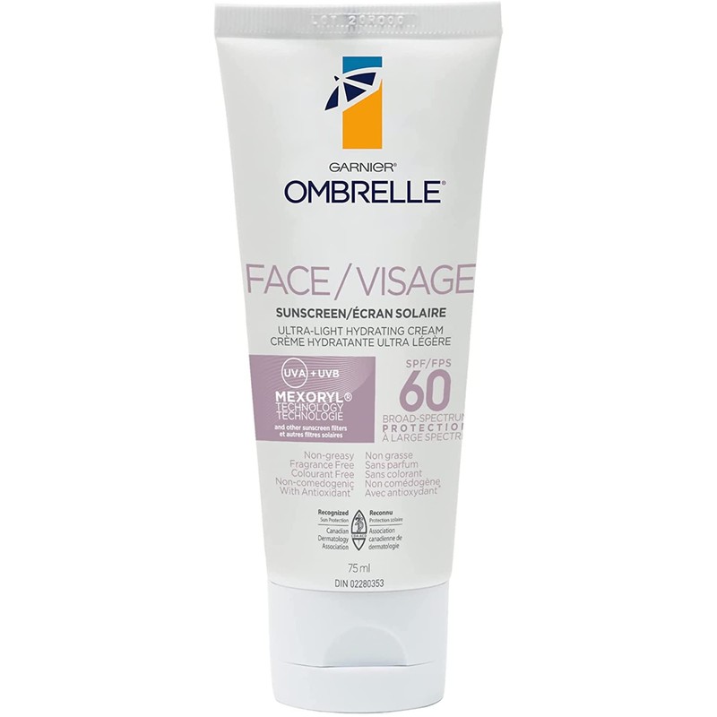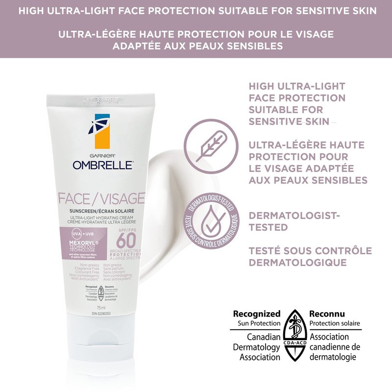 Garnier Ombrelle Sunscreen Ultra-Light Face Cream with Antioxidant, SPF 60, UVA UVB, 75 mL