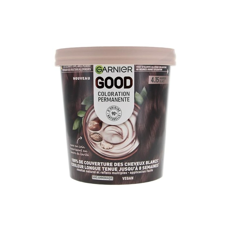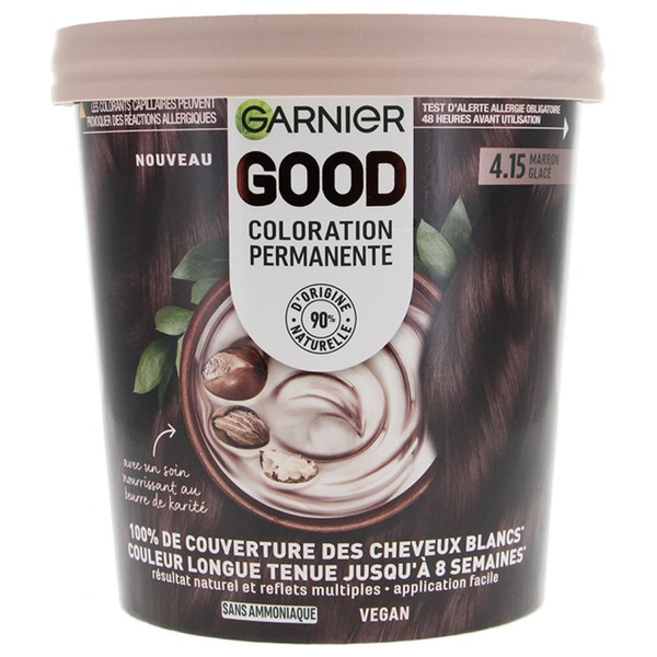 - Contents: 1 x Garnier Good, ice brown (4.15), cream included, colour cream, nourishing shea butter, gloves, spatula and instructions (English language not guaranteed)