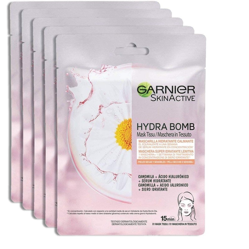 - Contents: 5x Garnier Hydra Bomb Sheet Masks, Moisturizing and soothing treatment for dry and sensitive skin, 5 x 32 g