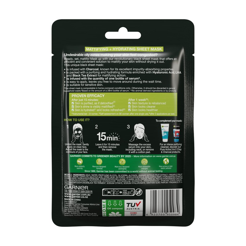 Garnier SkinActive Pure Charcoal Tissue Face Mask Black Tea