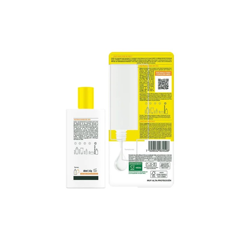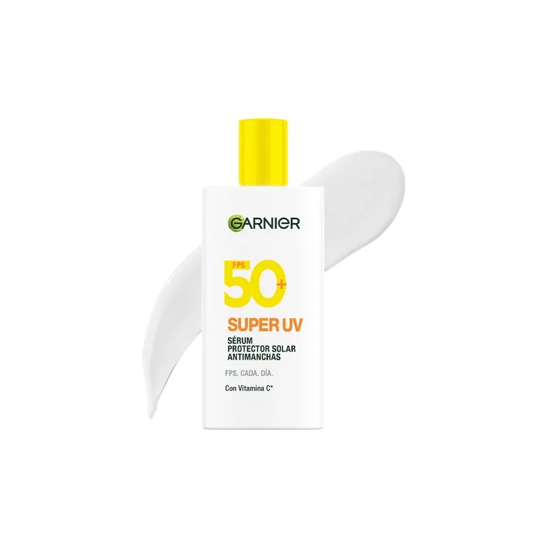 Garnier Super UV Protector Solar Facial Fluido Anti oleosidad FPS50+ con Vitamina C 40ml protege del daño solar y reduce manchas textura ligera aprobado por dermatólogos