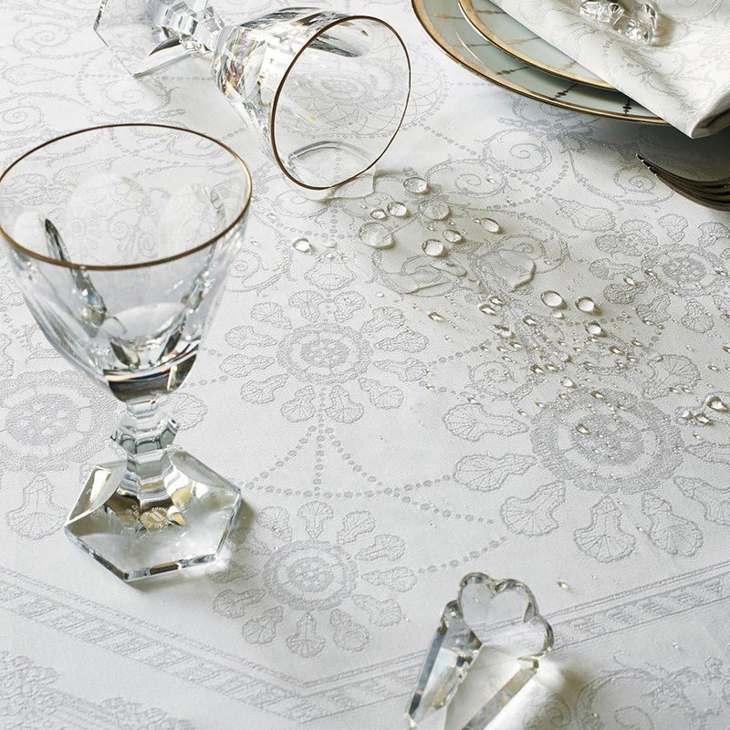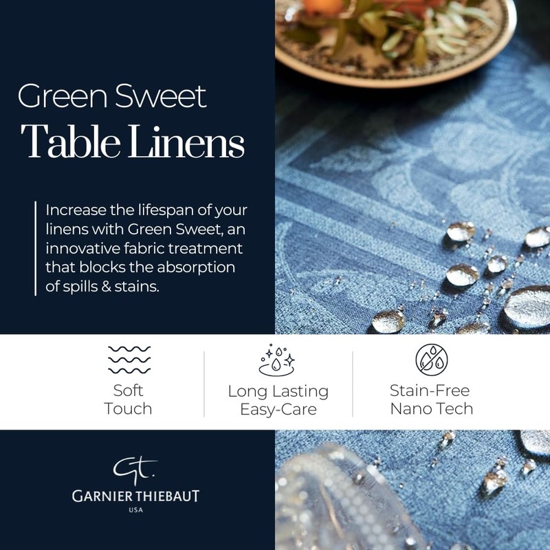 Garnier-Thiebaut, Galerie des Glaces (Hall of Mirrors) Vermeil French Woven Table Runner, 20" X 71", 100% Cotton Damask, Green Sweet Treated