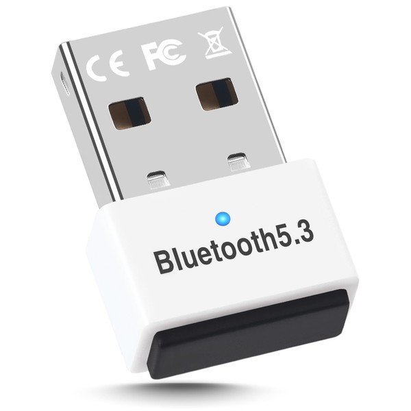 GAROGYI USB Bluetooth 5.3 Adapter for PC Supports Windows 11/10/8.1/7,Plug &Play For Win11/10, Mini 5.3+EDR Bluetooth Dongle Receiver&Transmitter for PC,Laptop,Keyboard,Mouse,Headsets,Speakers (White)