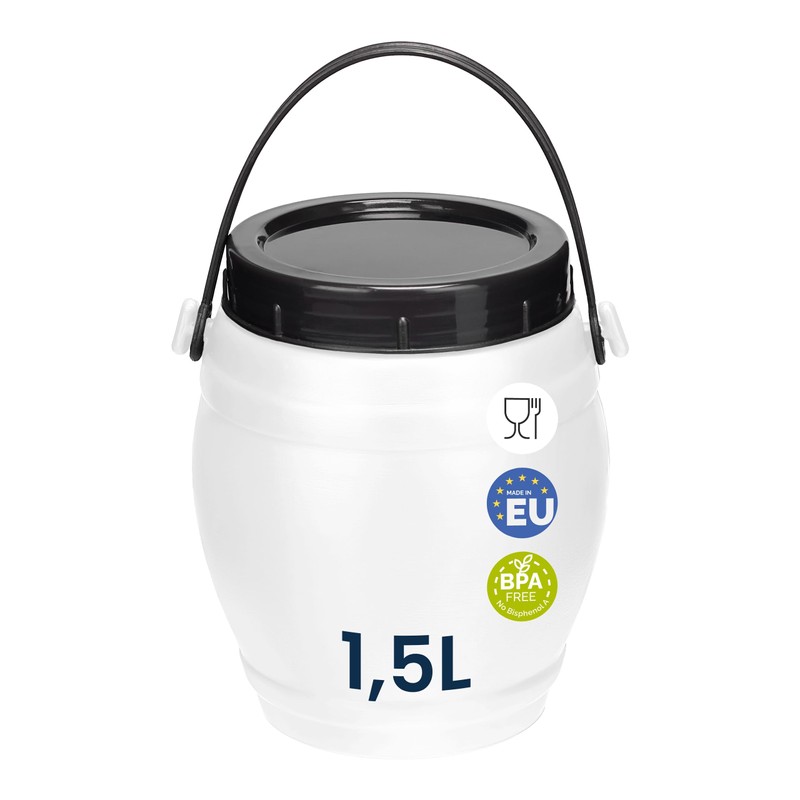 Garronda 1.5 Litre Container with Lid, Feeding Bin, Wide Neck Barrel, BPA-Free, Small Barrel Water Box with Lid, Ideal as a Transport Box, Safe Storage and Storage, GD-0086, White