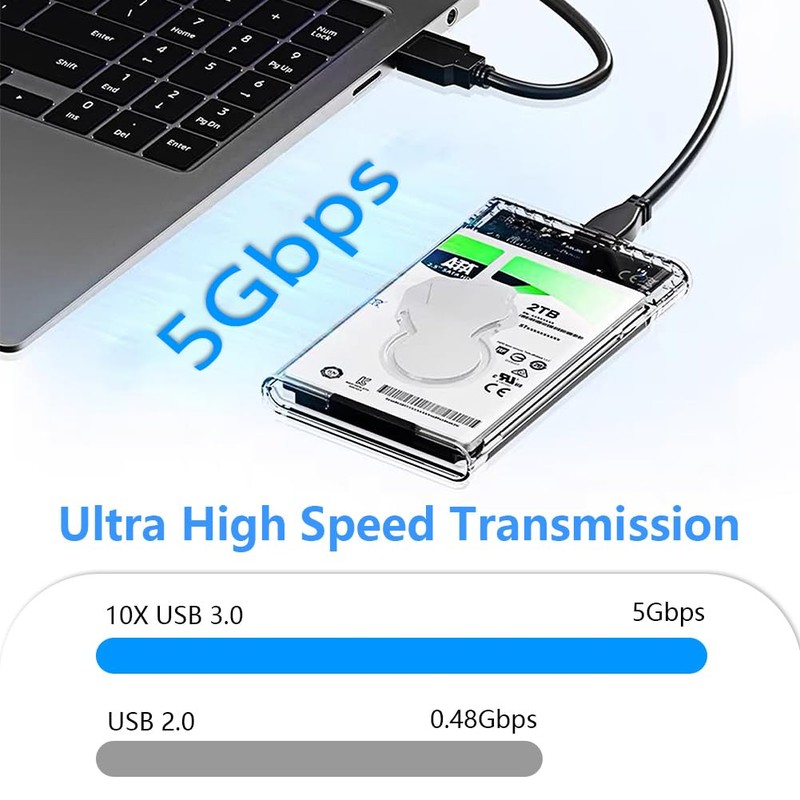 Garrulax External Hard Drive Enclosure , SATA To USB 3.0 2.5 inch SSD HDD 7mm 9.5mm Clear Hard Drive Case Supports UASP SATA