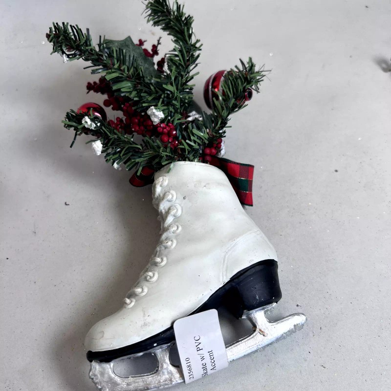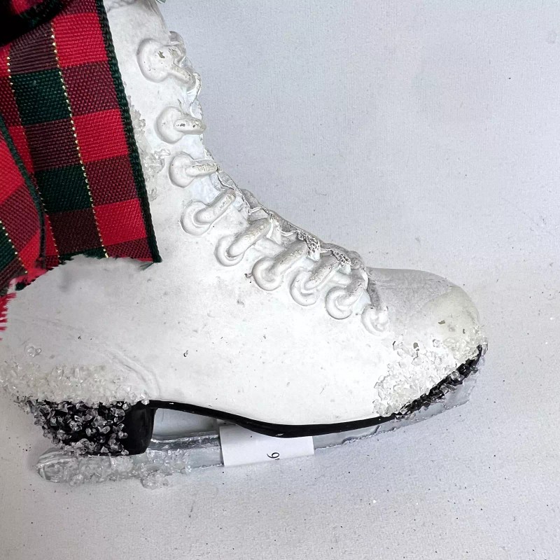 Garsons Ice Skate Christmas Ornament Greenery White Boot Pinecone Ribbon 9" Skating