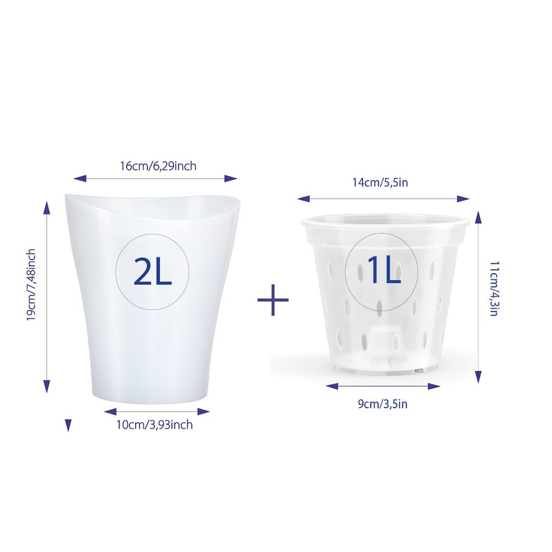 Garten lux Orchid Pots White Set of 4 2 L Diameter 16 cm with Set of 4 Orchid Planters Drainage Hole Plastic Transparent 1 L Diameter 14 cm for Indoor Use