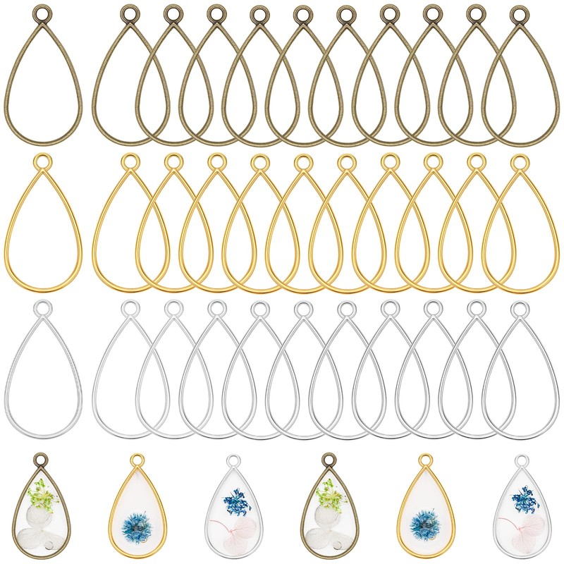 Gartful 30PCS Open Bezels for Resin, Geometric Hollow Frame Pendants Bezels with 100pcs Jump Rings, Resin Jewelry Making for Necklace, Bracelet, Earring, Keychain, Water Drop Shape